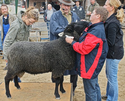 Landesschau der Landschafe in Mecklenburg-Vorpommern (2012) in Rövershagen in der Nähe von Rostock. Körung der Jährlingsböcke mit anschließender Versteigerung. 1 Jahr zurück